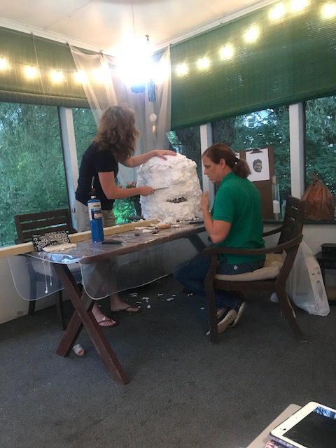 As most of you know, I have zero/negative artistic ability, so Jennifer and Vicki took the reigns on making the Hulk head and the rest of the truck theme design. Progress was pretty quick. We tried the new foam and it seemed to work great. We used a variety of shaping techniques, some working better than others, but all making a huge mess, lol. We ended up liking the Dremel with a barrel sander attachment as the best for fine work. For larger material removal we went with a sure-form type of tool with a variety of sizes being handy. We did end up purchasing a hot foam cutter set, but it wouldn’t arrive in time for this one. we can report back on its use on our next project.