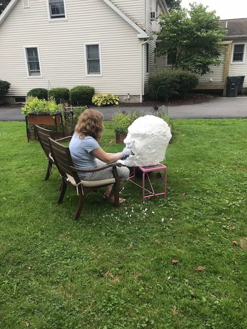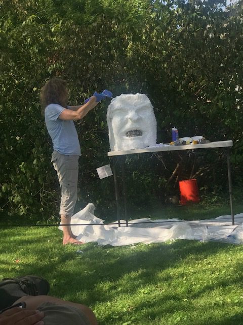 We stated with three different paths to make a head. One was to build it out of spray foam around a PVC tube and mounting bracket. The second was to build it out of solid foam insialtion boards and then scuplt and/or foam as needed. The last way was that we found a Halloween decoration head that we woudl use to build up a Hulk head onto it with spray foam insualtion. with three ways of making it, one of them had to work. How hard coudl it be?