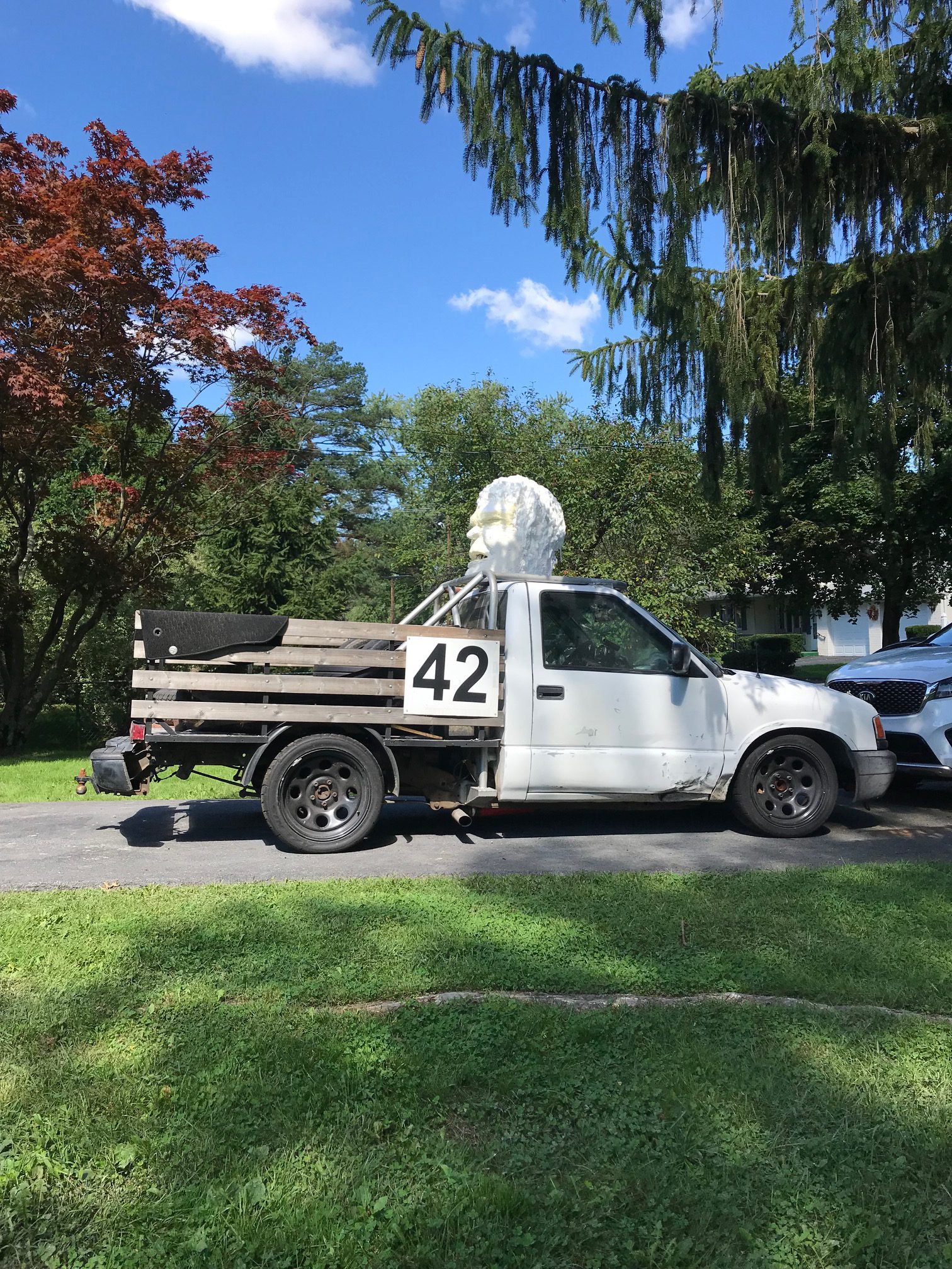 Far be it from me to push things along, but I wanted to get a new theme in place for our upcoming race at New Hampshire in 6 weeks. After looking at the a 1997 Isuzu Hombre truck, we agreed on a theme and direction. Now a little birthday guilt from me and the whole team was off to Home Depot to start working on our new theme. The centerpiece was intended to mount onto the roof of the car. We would also do our usual at home paint job and apply several decals to mostly finish up. We like to try to leave some time for dialing in our themes with final additions and tweaks.